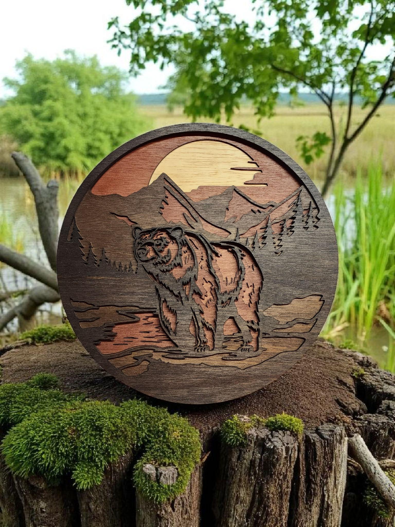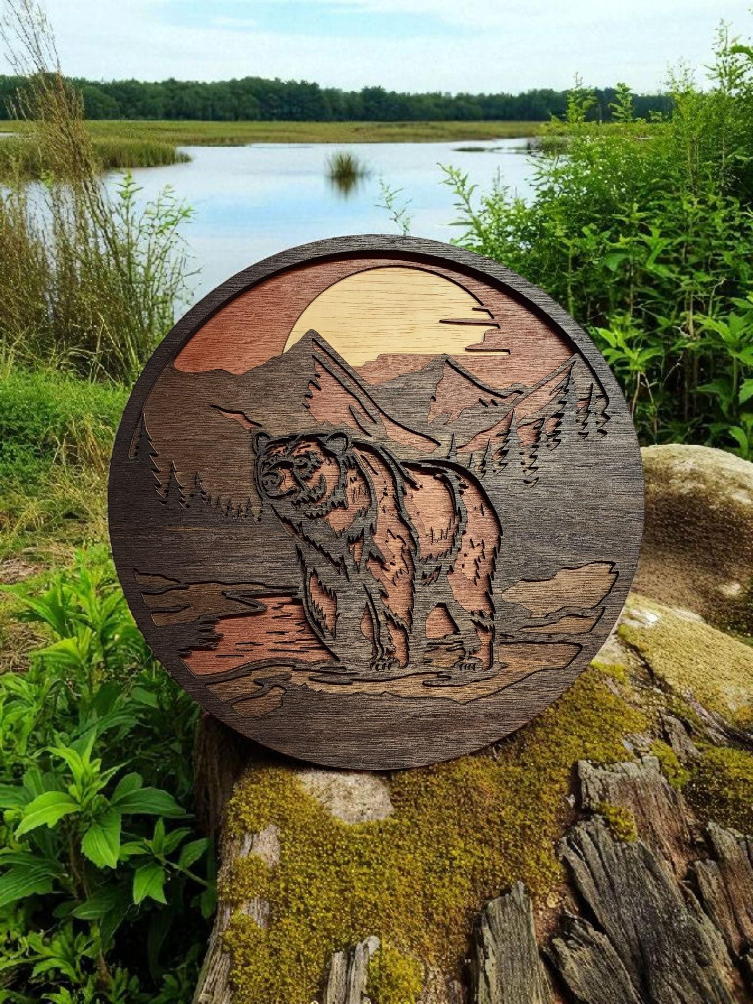 Elevate your home with our "Moonlit Bear" wall hanging. This meticulously crafted work of art that embodies the timeless beauty of nature.